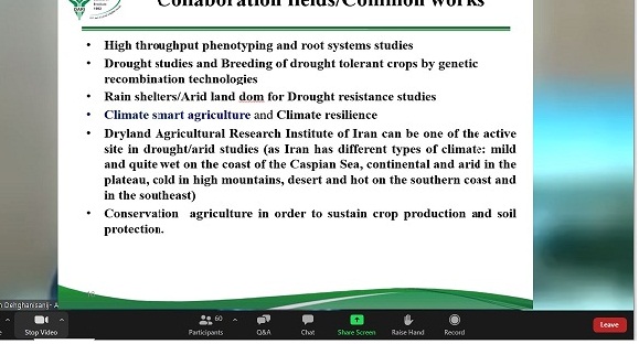 Dr. Alizadeh, director general of Dryland Agricultural Research Institute of Iran (DARI) attended in common webinar with Japan-JICA and Tottori university on 24 Nov, 2021. Dr. Alizadeh stressed on DARI capability to be one the active sites in the international drought studies, referring to research facilities in different agro-ecological zones of the country.